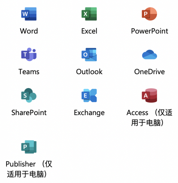 | 适用于电脑和 Mac 的桌面版 Microsoft 365 应用程序 | √ | √ | √ |