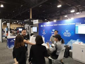 世纪互联蓝云现场进行了多场次蓝云云解决方案平台(公测版)和Cloud Landing in China(CLIC)战略的演示,吸引了来自全球各地的合作伙伴和业界朋友到场并与世纪互联蓝云的工作人员深入沟通畅谈。