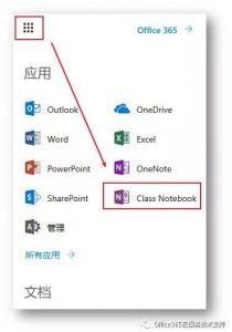 如果您是教育版用户,可以在门户顶部的 Office 365 菜单中找到 OneNote 课堂笔记: