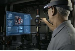 通过远程专家解决方案的系统与物联网设备IoT的信息共享交互,该企业一线的维修人员从HoloLens虚拟菜单中查看及调试现场设备: