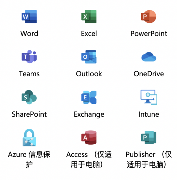 | 适用于电脑和 Mac 的桌面版 Microsoft 365 应用程序 | √ | √ | √ |